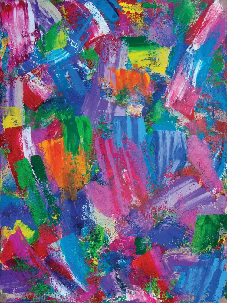 Twenty-five-year-old contemporary artist Nicholas Kontaxis thrives as a self-taught abstract artist – expressing his unique passion for life through his vibrant paintings, a riot of primary colors despite living with a brain tumor and 50,000 seizures to date. Kontaxis expresses himself through his bold, colorful and inspirational large-scale canvases that have touched countless individuals and collectors from around the world. His paintings have become his voice despite limited expressive verbal skills. Kontaxis, a true brut artist, has landed solo exhibitions in Los Angeles, Palm Desert, Sun Valley, Chicago, Atlanta, Brooklyn and London. With numerous commissioned works including, the Los Angeles Chargers, Kaiser Permanente Hospitals and Adidas at Coachella in 2019.