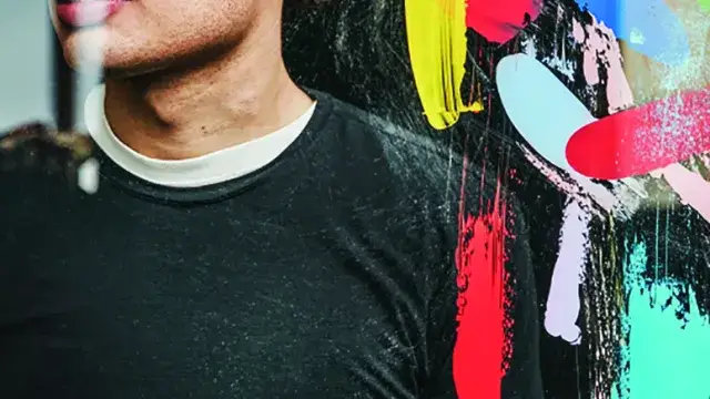 That’s not just a proud mother’s assessment of her son’s work. Steph Sebbag of De Re Gallery in Los Angeles, where Kontaxis’s paintings have been exhibited, says his work is “comparable to artists such as Jasper Johns and Sam Francis”.