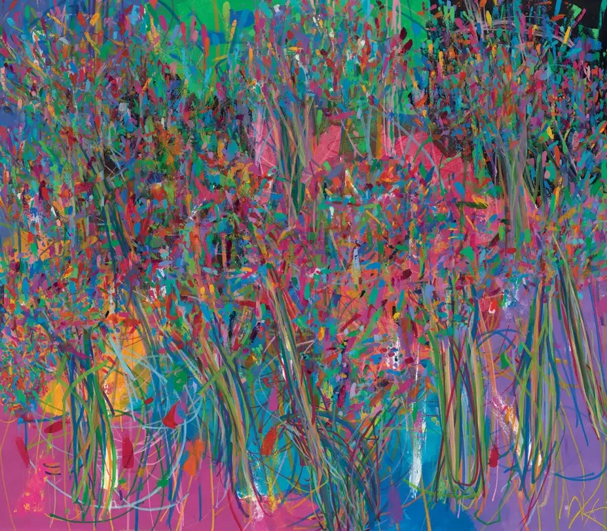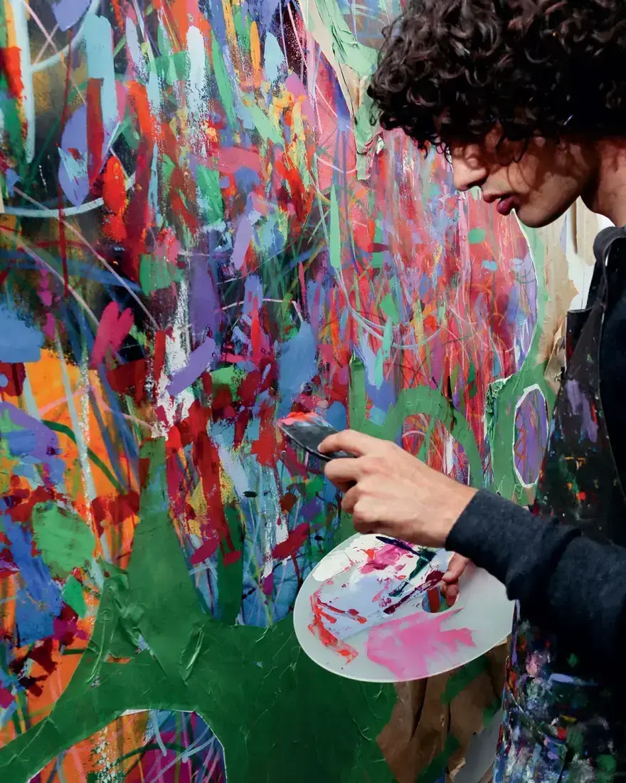 His paintings are imposing, oversized, and dazzlingly colorful. Or, as the American magazine Forbes put it better, having included the young artist in its famous “30 Under 30” list for 2023, his art is the nonverbal language he invented to communicate with the world.