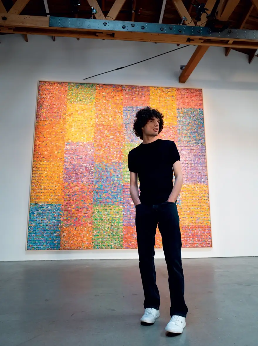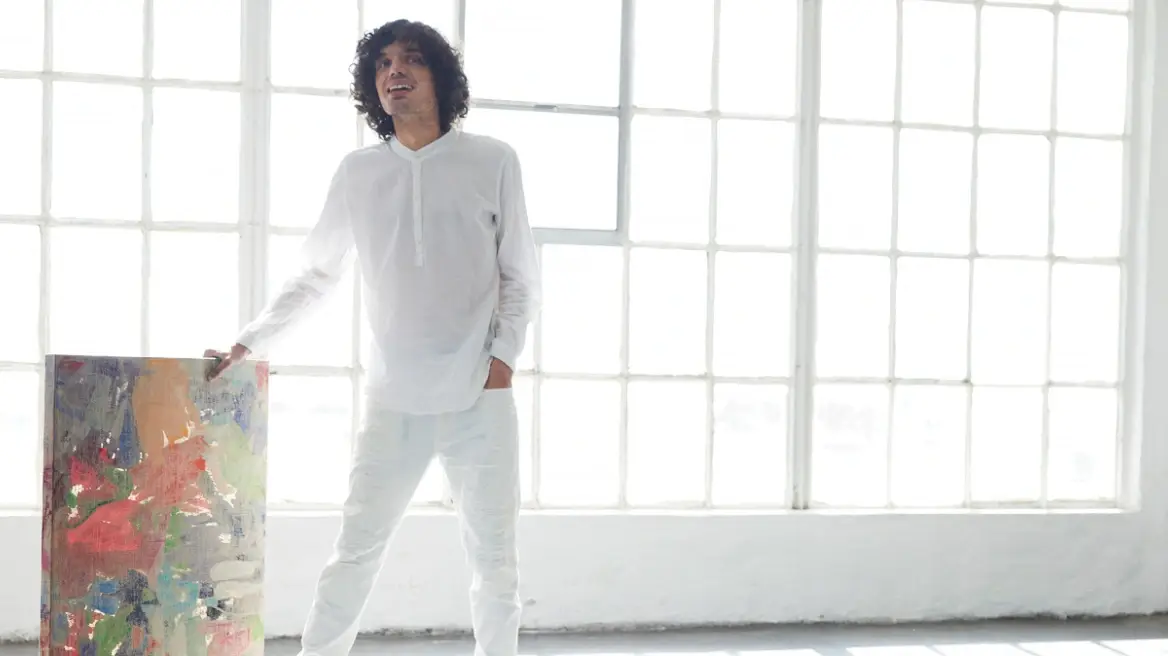 He is a painter, just 27 years old, living in Palm Springs, California. He is undoubtedly rising, talented, and in demand. You can understand this by looking at the numerous exhibitions he has already held in Europe and America—an impressive feat given his young age—the commercial collaborations he has had with the renowned Coachella Festival and Adidas, the rave reviews his creations have received, and the celebrity stamp he has earned: his works, which aesthetically balance between abstraction and expressionism, grace the contemporary art collections of Roger Federer and Adele.