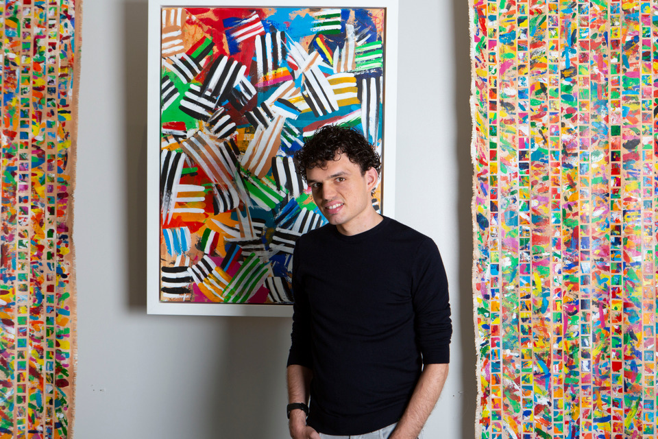 Having taught himself to paint, he works for at least eight hours each day. He has been exhibited in top Los Angeles and New York galleries, and counts collectors including Roger Federer as fans.